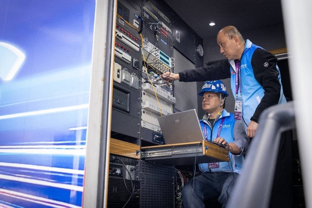 展会期间,上海电信以“双万兆”底座全力护航。在重点业务保障方面,上海电信服务的开幕式及主、分论坛通信专线共计155条,国内国际长途87门,新闻中心专线9条,警卫制验证16个点位,全程运行平稳、传输顺畅;全域调度方面,累计出动保障人员15000余人次、保障车辆1200多台次。陆地上,上海电信部署14辆应急通信车,通过“战区制”跨省调集支援;海域中,11艘巡逻船累计守护海缆近3000公里,7x24小时AIS路由监控,成功劝离63艘次违规船只。
